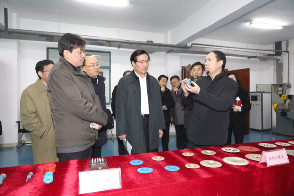 在新型超硬工具实验室,由肖冰教授领衔研发的“金刚石与立方氮化硼超硬磨料新型工具项目“,属于国内首创,拥有完全自主知识产权。目前已成功开发出高铁轨道、铸件飞边、陶瓷干钻等多系列工具,有着“高效、环保、安全、寿命长”的独特优势。肖教授介绍,国内许多机加工设备及同类工具一周就要换一次,而他研发的工具只需一年更换一次,为企业大幅降低生产成本提供了可靠保障。现在相当部分的工具已实现产业化批量生产,在无锡和周边多家企业得到广泛应用,为企业带来10亿元以上的经济效益。黄钦给予高度评价,希望该技术能尽快推广应用,惠及无锡企业。