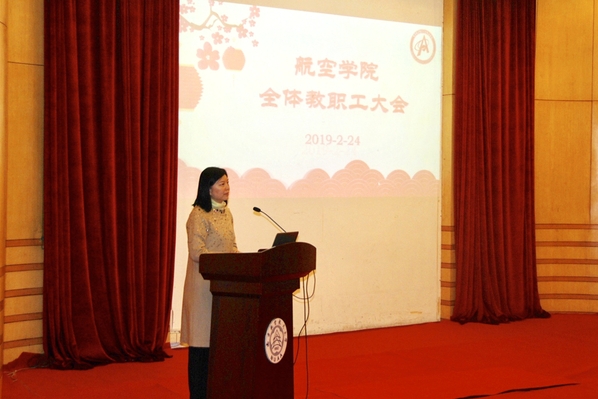 2月24日是新学期首个工作日,航空学院全体教职工齐聚一堂,召开学院大会。会议由学院党委书记冯绍红主持。
