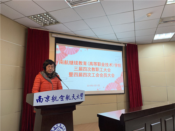 1月17日上午,在明故宫校区12号楼报告厅,继续教育(高等职业技术)学院召开三届四次教职工大会暨四届四次工会会员大会。学院领导、全体教职工参加大会。学校工会副主席褚峥应邀参加大会。