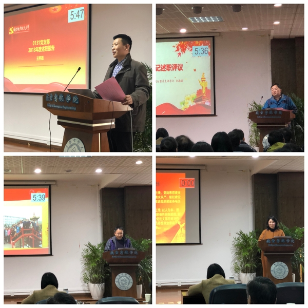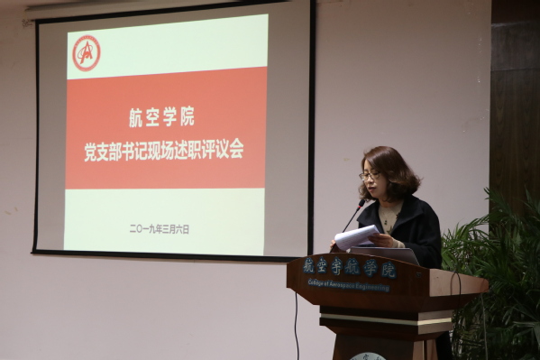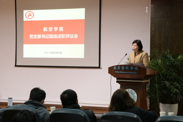3月6日,航空学院召开党支部书记现场述职评议大会。18位支部书记参加了现场述职,学院党委委员、学院班子成员、全体师生支部书记、学院党务工作人员、全体辅导员和学生党员代表共一百多人参加了评议。会议由党委副书记许静主持。