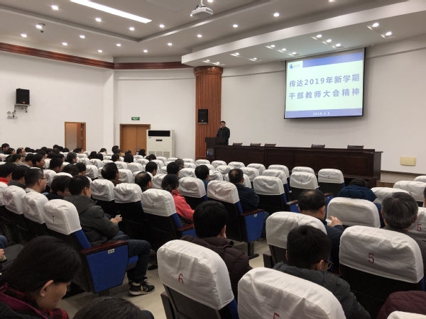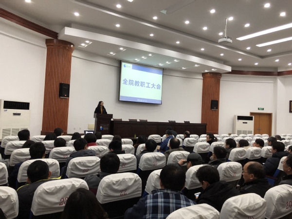 3月6日下午,理学院在学院一楼报告厅召开了全院教职工大会,会上传达了学校2019年新学期干部教师大会暨全面从严治党工作会议精神和教育思想大讨论总结大会精神,对学院2019年的重点工作进行布置。理学院党政领导班子成员和全体教职工参加了会议,会议由理学院党委书记余春玲主持。