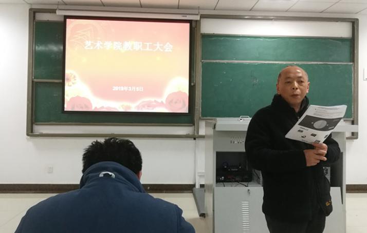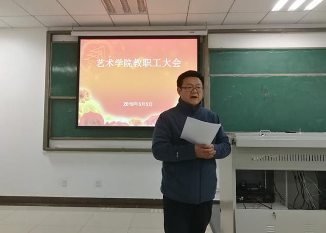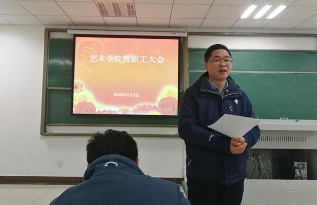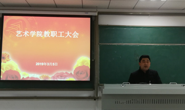 3月5日下午,艺术学院组织召开新学期全院教职工大会,学习传达学校教育思想大讨论总结大会、学校新学期干部教师大会暨全面从严治党工作会议等重要会议精神,并结合学院发展实际,对学院2019年度重点工作进行布置。
