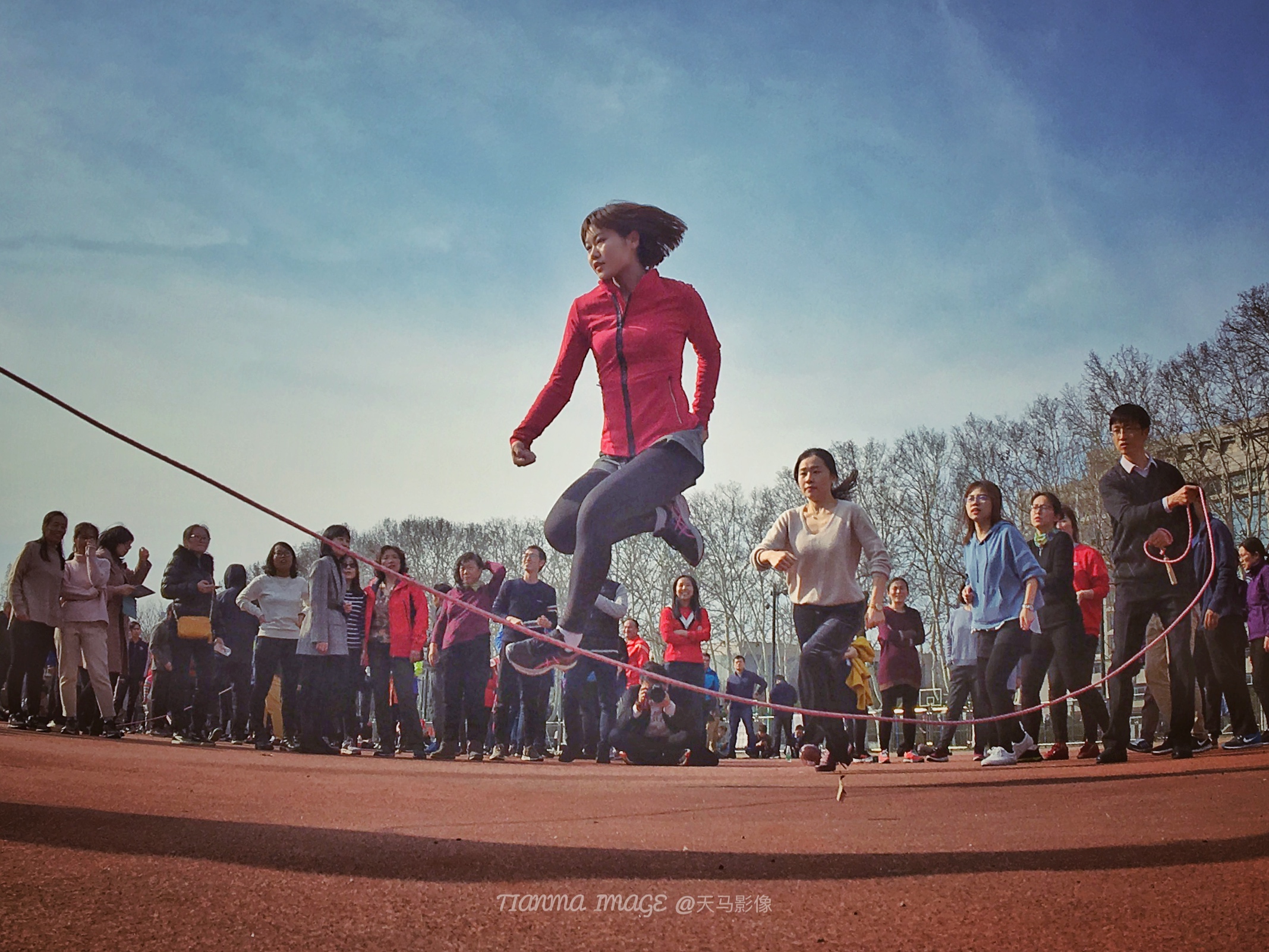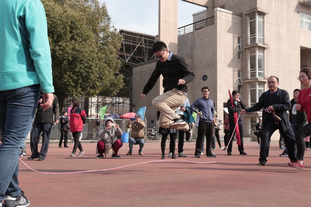 随着一声哨响,承载着无数人童年记忆的绳子开始跳跃了起来。看,老师们毫不逊色,他们身轻如燕,一个紧跟着一个。跳大绳不仅是个人身体素质的挑战,也是一个团体配合是否默契的评判。
