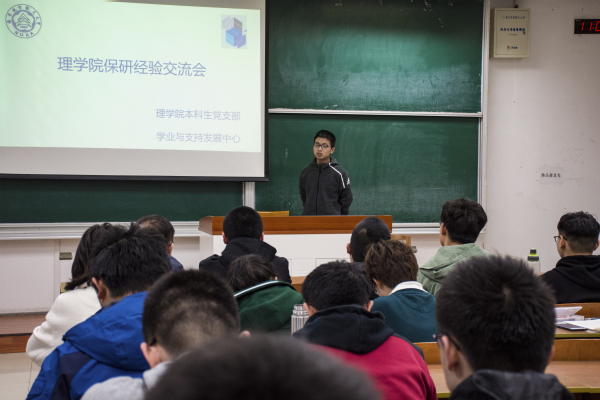 3月21日,理学院本科生党支部在将军路校区6202教室举办了“党员带你聊升学”之保研经验交流会,邀请了六位2015级成功保研的同学,和大二、大三的同学分享了参与保研夏令营、专业选择和导师联系等方面的经验。目前,这些同学已分别保研到我校以及中国科学院、浙江大学、北京航空航天大学等高校。