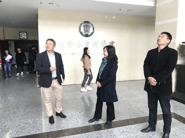 3月29日下午,体育部直属党支部在书记吕玉军带领下一行七人前往经济与管理学院开展党建工作学习调研。经管院院长周德群、党委书记焦宏图、党委副书记涂志宏等陪同调研。