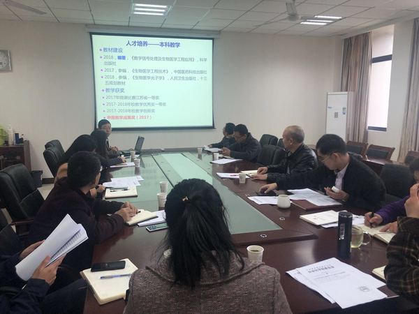 随后,生物医学工程系主任李韪韬对近年来系所取得的成果进行了汇报和介绍,经过师生的共同努力,生物医学工程的学科实力稳步提升,目前已获批国家自然科学基金重大科研仪器研制项目1项、交叉学科项目立项1项,获得省级、校级教学奖一等奖各1项,并发表了多篇高水平学术论文。刘建成对生物医学工程系近几年的发展给予高度肯定,希望能够始终保持发展劲头,取得更多新的突破。