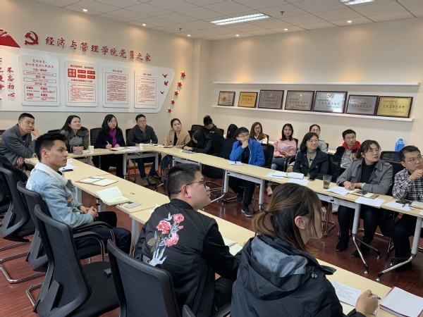 4月2日,经济与管理学院在学院党员活动室举行了党支部书记工作坊,学院党委书记焦宏图、党委副书记涂志宏、管工系支部书记罗正军、工商管理系支部书记谢嗣胜、组织员袁颖、学生党总支成员以及全体学生党支部书记参加了活动。