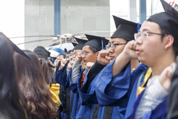 在庄严肃穆的《国际歌》后,昂海松教授为同学们讲授了一场别开生面的党课。昂海松从祖国航空事业的发展历程和辉煌成就出发,勉励党员们要热爱祖国、回报祖国,并对全体党员提出殷切希望,希望党员们坚持学习,在专业课程和工程实践中不断加强知识储备,要爱党爱国,不愧对党和国家的教育,更要踏实工作,努力奋斗,为祖国发展、人类进步贡献力量。随后,教师党员代表、青年教师兼职辅导员毛春见带领新党员入党宣誓,在场毕业生党员重温入党誓词。