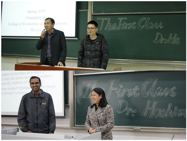 4月3日,对于经济与管理学院90后何昌清老师和外籍教师HASHIM.ZAMEER来说,是教师职业生涯中难忘的一天。这一天,经管学院党委书记焦宏图、副院长王英、邓晶分别将两位老师送上了英文课程《工商管理导论》、《宏观经济学》的讲台。