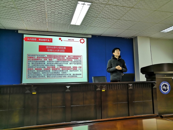 3月28日下午,机电学院在明故宫校区522报告厅举行第三期“信仰公开课”,组织研究生骨干学习全国两会精神和习近平总书记在全国思想政治理论课教师座谈会上的讲话精神。公开课由机电学院团委书记王洋主讲,研究生全体党支部委员、团支部委员参加了此次公开课。