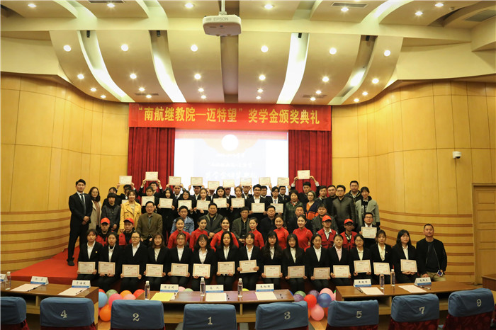 4月3日晚上,继续教育学院“南航继教院—迈特望”奖学金颁奖典礼在逸夫科学馆报告厅举行。学院党委书记高斌、党委副书记贡海俊、南京迈特望科技股份有限公司董事长张宝明先生等出席颁奖典礼。学院相关部门负责人、辅导员及部分学生代表参加了颁奖典礼,典礼由辅导员熊啟龙主持。