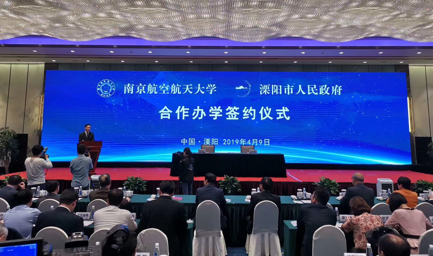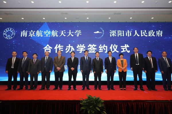 4月9日上午,南京航空航天大学与溧阳市人民政府合作办学协议正式签署。全体校领导,溧阳市四套班子全体领导以及学校相关学院、职能部门负责人,溧阳相关部门负责人出席签约仪式。溧阳市市长徐华勤主持签约仪式。