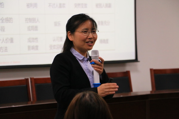 吴安华从个性、价值观、职业兴趣和职业能力四个方面向学生介绍了该如何去确认自己的职业方向。同时,她向学生们分析了不同性格人的心理偏好和特点,她指出,“性格没有好坏,不同性格的人适合不同的工作,要懂得有意识地运用自己的性格优势,进而找到适合自己的工作”。