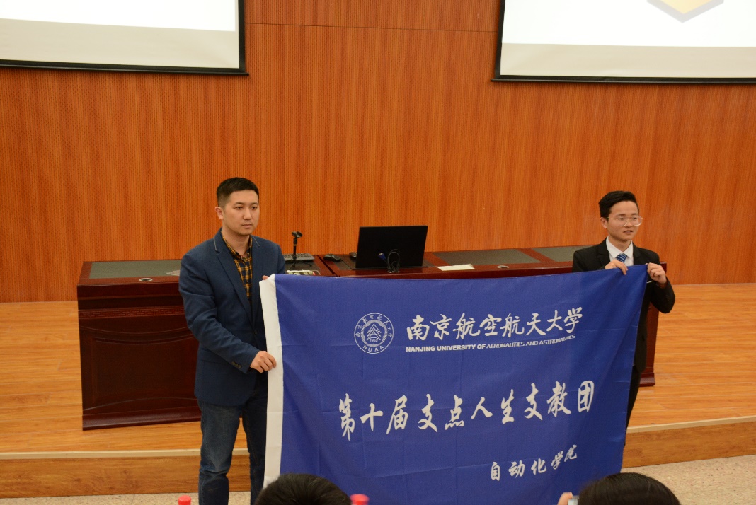 丁琛为“支点人生”第十届支教团授旗,正式揭开了第十届“支点人生”支教活动的帷幕。总团长李珩宇详细介绍了2019年支教活动“9个分团+1个回访团”的安排,宣布了2019年的支教地点,明确了支教团延续传统、发展三航特色的方针,并介绍支教准备的相关活动。宣讲会最后答疑环节,总团长和往届团员回答了参会同学关于支教活动的疑惑问题,与会同学对支教活动各项流程更加熟悉清晰,收获颇丰。