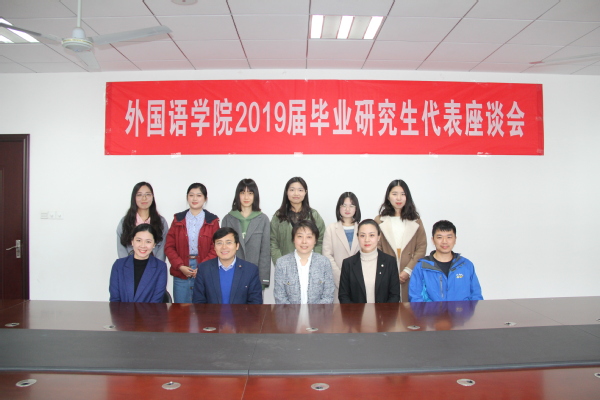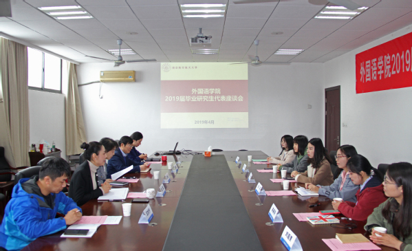 4月11日上午,外国语学院2019届毕业研究生代表座谈会在外国语学院322会议室召开。院党委书记左彤云、副书记梁薇,英语系主任姜礼福,研究生教务员、辅导员以及毕业研究生代表参加了此次座谈。