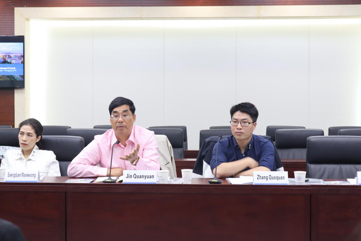 座谈会上,在播放了南航校园宣传短片后,金泉元首先向泰国高校代表团的来访表示热烈欢迎,并向他们详细介绍了南京的历史文化以及我校的办学历史、办学特色和学科建设特点及成果等。随后,Mr. ATHCHA CHARTDHUMMARUGSA作为教育团代表发言,他衷心感谢了我校的热情接待,并详细介绍了9所院校的办学历史和办学成果等。