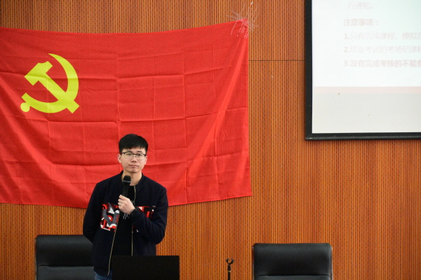 紧接着,范伟向第8期党员发展对象和第57期入党积极分子详细地阐述了此次培训的每一个环节及其注意事项,指导学生端正思想,认真学习,以实际行动向党组织靠拢。在动员会上,范伟还向学生们介绍了本期实践活动的具体安排,希望同学们能够在实践活动中将培训班所学的知识内化于心,外化于行。