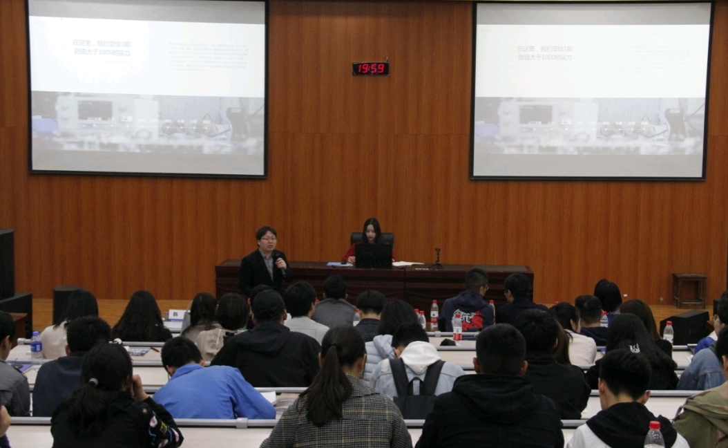 徐晨华先生用一段视频作为开始,介绍了公司的工作环境和情况,并和同学们谈了未来选择职业的方法和原则,希望同学们积极参与活动,来到有车以后去实现自己的梦想和追求。