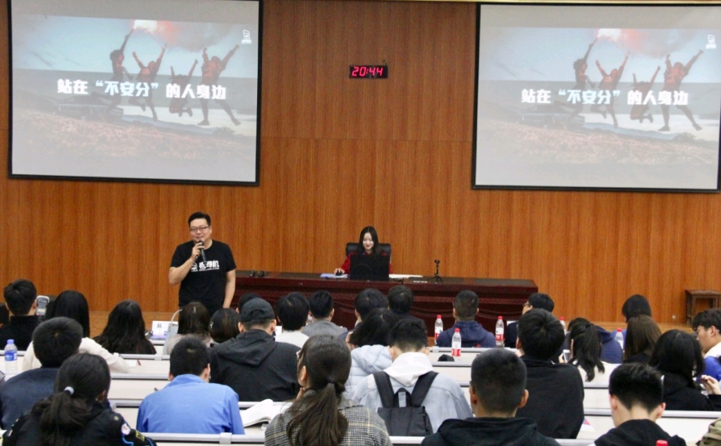 韩松向大家展示了老司机公司轻松活泼的企业氛围,并告诉同学们为什么要选择种子计划:站在“不安分”的人身边,挖掘自身不安分的因素并为之奋斗,让自己的青春无怨无悔。