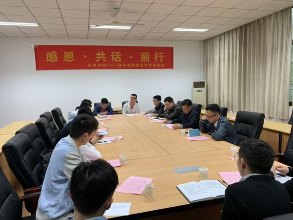 4月9日,机电学院在明故宫校区6号楼310会议室举行了“感恩·共话·前行”2019届毕业研究生代表座谈会。机电学院党委书记袁智强、副院长徐正扬、党委副书记徐俊珠,研究生辅导员王洋、张恒以及来自各专业的优秀毕业生代表参加了座谈。会议由研究生辅导员王洋主持。