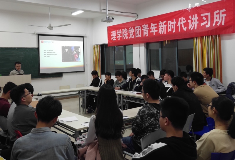 为深入学习习近平总书记系列重要讲话精神,使政治理论学习和党员团员的再教育成为学生党支部和团支部的常态化工作内容,理学院创新开办党团青年新时代讲习所。4月16日晚,第三期讲习所邀请到了南京师范大学地理科学学院团委副书记、南航校友沈晓海,带领理学院党员团员骨干及学生工作人员40余人,共同学习了习近平总书记关于青年工作的重要论述。