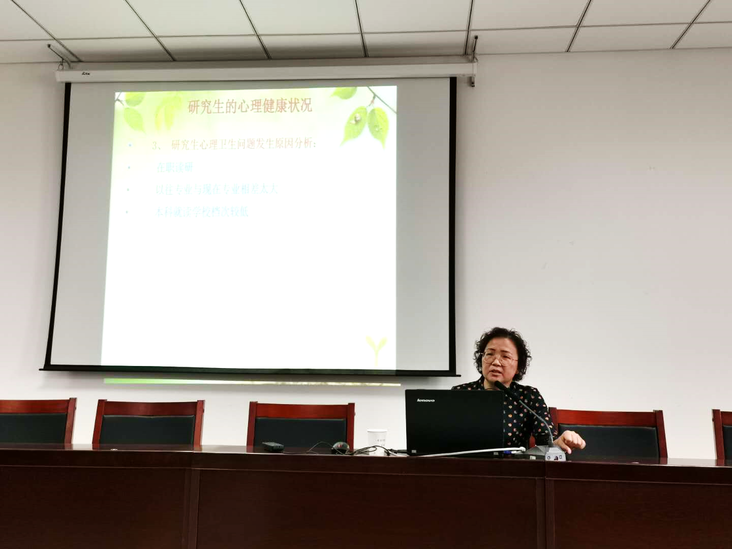 针对研究生这一群体,杨老师结合多年心理咨询工作的经验及深厚的理论功底,围绕研究生心理健康状况、研究生的主要心理卫生问题及原因、常见的心理疾病及表现进行了分析。她特别指出,学术压力和情感问题与往往是引发研究生心理问题的主要源头,而面对这些问题,同学们需要掌握一定的方法,自我调适,实现个人成长。杨老师幽默而风趣的语言引起现场笑声阵阵,大量鲜活的事例生动地解析了同学们研究生生活中的问题,使同学们从理性的角度加深了心理压力与个人成长的认识。