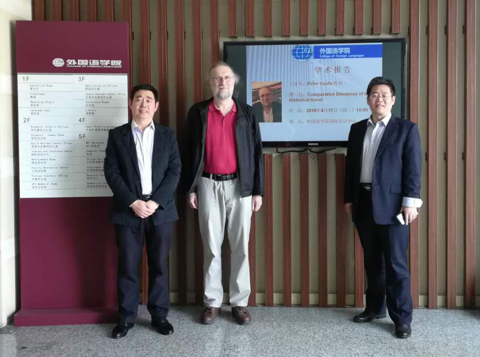 4月17日下午,外国语学院在国际会议中心举办了题为 Comparative Dilemmas of the Historical Novel(历史小说的比较困境)的全英文学术报告会,报告人为国际权威期刊Neohelicon ( A&HCI)杂志主编、匈牙利科学院Péter Hajdu教授。报告会由副院长徐以中和蔡咏春教授共同主持。