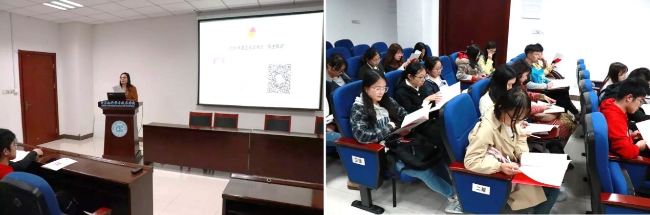 各支部于4月11日-19日期间举行了“双述双评”工作。通过“述学”和“述职”,团支书带领全体团员梳理了2018年的各项团建工作,总结了一年来的收获和不足。团建指导员现场对团支书的“述学述职”情况进行点评,提出进一步的希望和要求。最后,团员填写匿名问卷评议团支书的工作情况。为提升工作效率,此次“双述双评”还采用了网上评议,团员在现场扫描二维码就可以手机填写,大大提升了评议效率,并减少了后期结果统计的工作量。