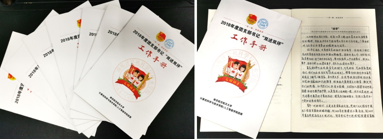 编印了一本手册。为规范团支书的“双述双评”工作,根据工作要求,学院团委将团支书职责细化,对述职部分进行模块划分,并将内容编印成精美的工作手册,交由各团支部书记填写,帮助团支书更好的开展述职述学。