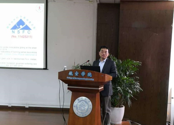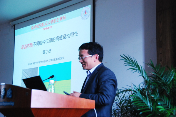 应我校航空学院机械结构力学及控制国家重点实验室张助华教授的邀请,中国科学院力学研究所非线性力学国家重点实验室主任、国家杰出青年基金获得者魏宇杰教授于4月18日至20日访问了我校,并于4月19日作题为“不同结构位错的高速运动特性”的学术报告,郭万林院士参加了报告会,报告会由张助华教授主持。