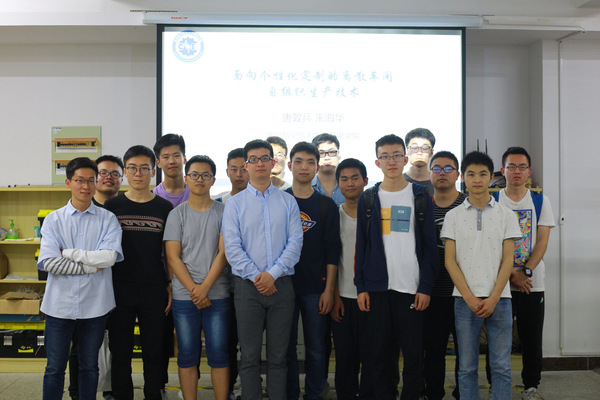 在本期活动中,来自智能制造系统实验室的朱海华老师带领两位研究生依次为大家介绍了实验室的研究方向、工程应用及本科生可以参与的科研项目,并通过视频和现场实际操作向同学们展示了部分研究成果,使同学们近距离感受到了前沿科研的独特魅力。
