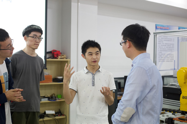 操作演示结束后,朱海华老师总结道,企业可以使用实验室所研发的接口和模块,改善自己的制造模式,这是整个制造行业的进步。实验室的科研成功,充分体现了“科技是第一生产力”的概念,体现了科研的实用性与前沿性。活动尾声,同学们就就业问题、科研方向问题和对本次参观中产生的一些疑惑向老师提问,朱老师鼓励同学们完善知识储备,因为实验室项目所运用到的知识,不仅仅有在校本科生所学的专业知识,还有很多跨专业知识,比如数控机床、机器人、控制类知识、工艺流程、c语言、人机交互、Java语言、协议接口标准等。在当今价值多元、组织多元、社会多元的环境常态下,复合型人才的的重要性不言而喻。