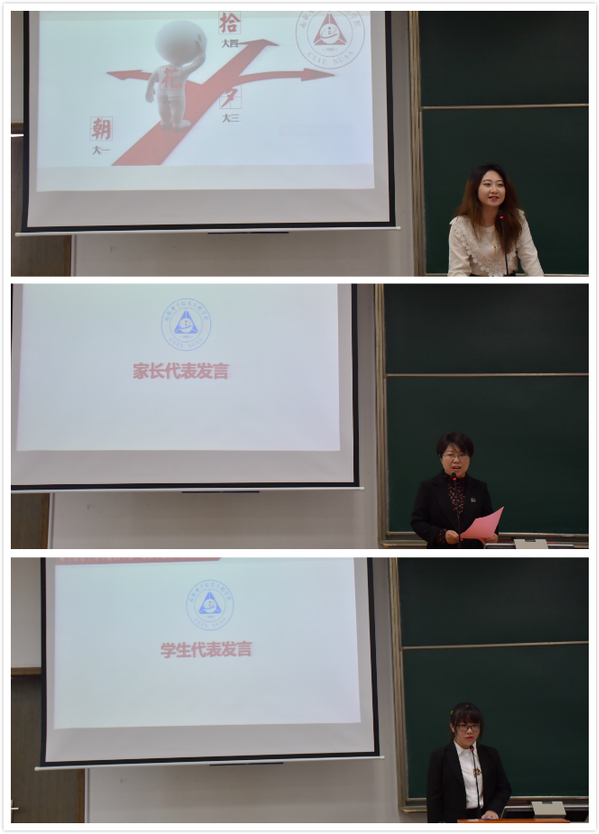 第二篇章伊始,雷磊介绍了人才培养及专业分流情况,毕业班辅导员张晓媛老师向家长们介绍了学院历年毕业生的毕业去向。紧接着,家长代表与学生代表依次发言,分享经验。交流会结束后,全体家长与老师们一起来到图书馆东门前的台阶上合影留念。