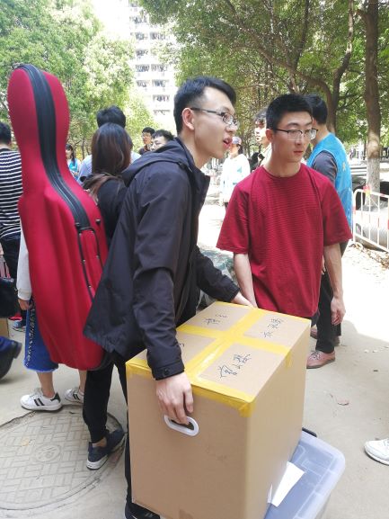 此次活动中,公寓服务中心党支部的老师们和民航学院15级党支部党员及16、17、18级入党积极分子50余人通力合作、万众一心。或是穿梭于各楼层和宿舍大厅,帮助女生搬运沉重的大包行李,额头渗出细密的汗珠也继续奔忙着;或是帮忙推三轮车扶行李,炎炎骄阳下在18栋和8栋间往返,确保行李完好送达;或是在8栋门前守望,帮助卸下行李,摆放整齐,方便学生认领。最终高效有序的完成了公寓搬迁工作。