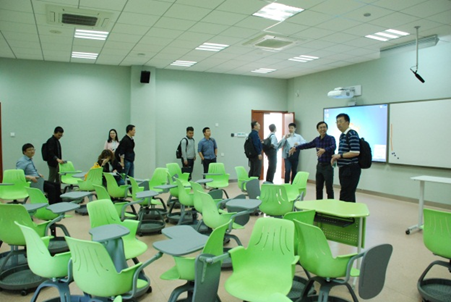 下午,参会代表赴东南大学移动通信国家重点实验室调研了5G通信技术研发和应用情况介绍。随后,观摩和体验我校将军路校区5号教学楼智慧型教室,并开展了智慧教育环境探索研讨。