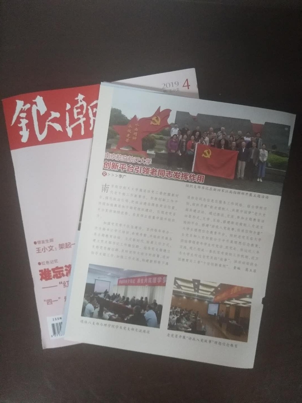 由江苏省委老干部局主办的《银潮》杂志在2019年第4期封二位置以《南京航空航天大学创新平台引领老同志发挥作用》为题,刊登了介绍我校党建工作经验的图文。文章从加强党员骨干队伍建设、拓展支部工作方式、老少支部共建及搭建大学生理想信念教育平台几个方面阐述了我校在离退休党建工作中的先进经验和做法。
