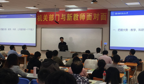 据悉,机关部门与新教师面对面活动系2019年春季新教师校本培训方案中新增的课程模块,旨在搭建机关部门负责人与新教师交流、沟通的平台,帮助新教师尽快了解和熟悉学校的教学、科研及管理工作,快速认同南航、融入南航,更好地根植于南航、茁壮于南航。
