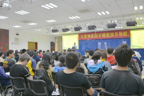 首先,许建秋从自身求学经历讲起,向同学们讲述了其在校学习生活中的点点滴滴,在场同学纷纷被其生动的事例所吸引,同时也被其努力学习的精神激励着。同时许建秋从学科情况、工作情况、薪酬状况、技术的重要性等几个方面与同学们分享了为什么选择学习计算机专业。