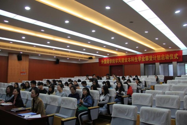 为激发学生学业学习主动性、积极性,促进学生学业提升,营造学院良好学习风气,4月30日中午,外国语学院在学院国际会议中心举行了“学风建设本科生学业攀登计划启动仪式”,学院党委副书记梁薇、各年级辅导员、学业攀登计划参与学生出席活动,活动由辅导员彭欢主持。