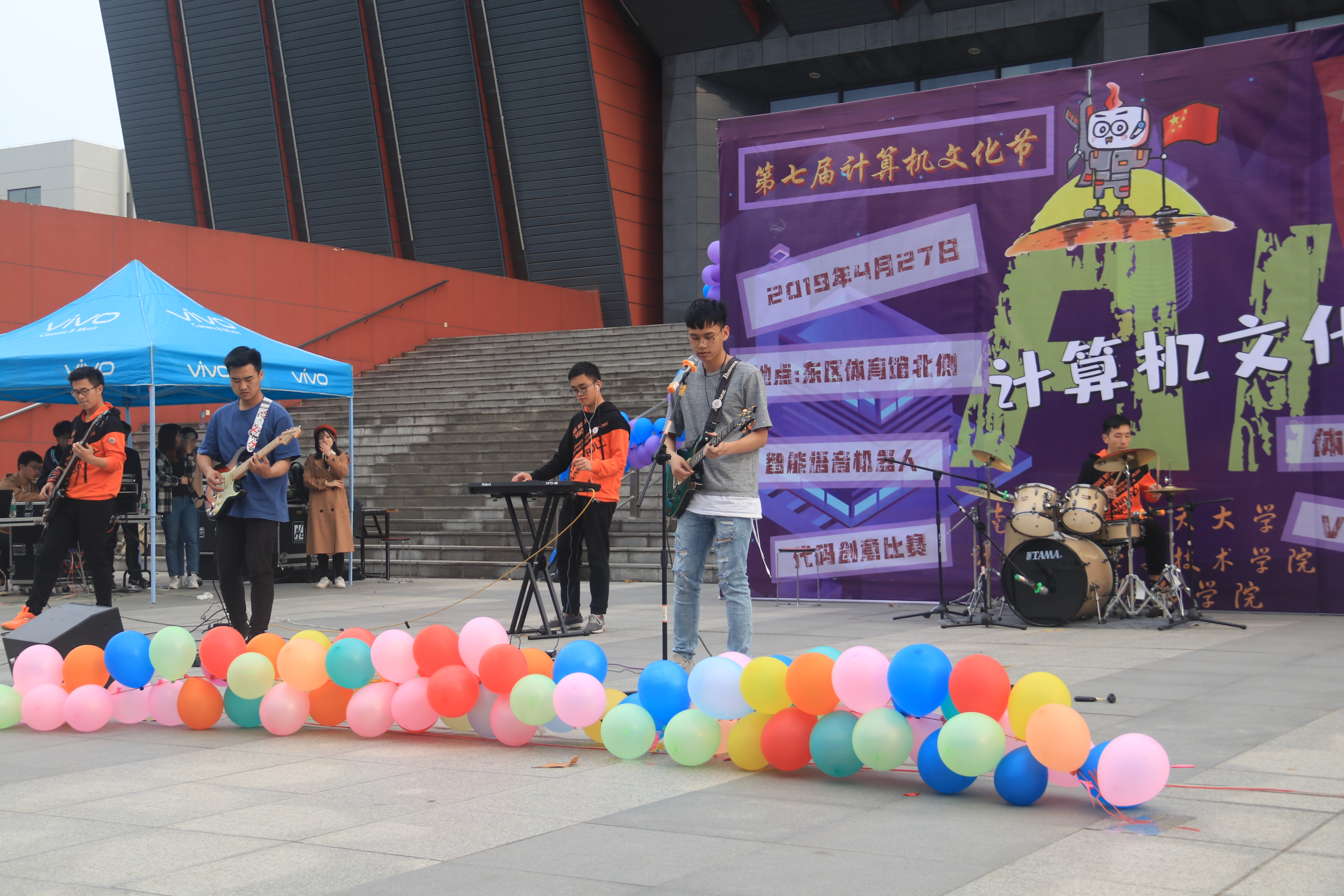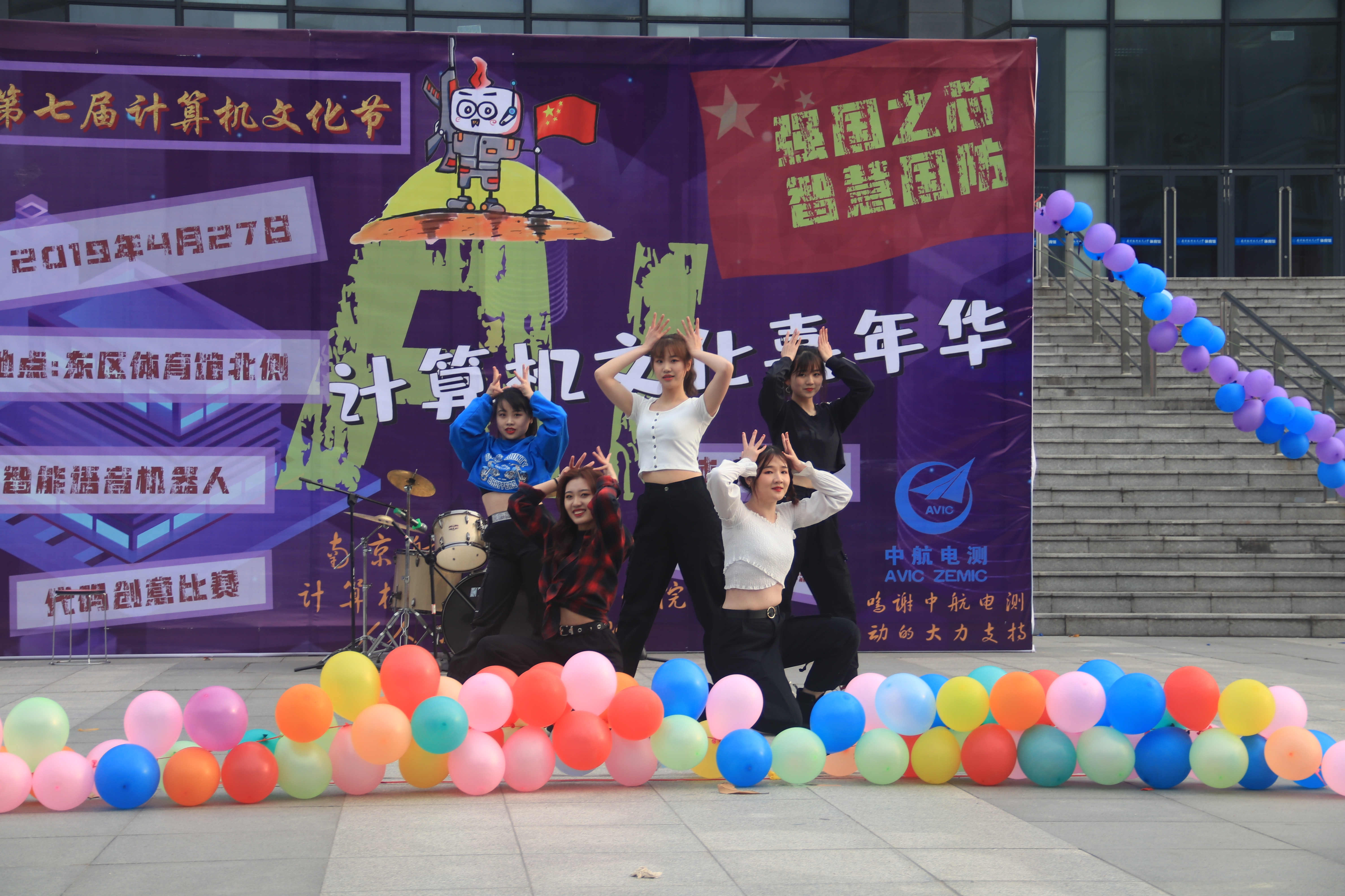 下午5点,开幕式准时开始。“飞天小女警”舞团首先为在场的观众带来了热情的开场舞,点燃了现场的气氛。学院党委副书记管祎、中航电测人力资源部何为共同放飞了氢气球,为活动正式启幕。接下来,来自不同社团的乐队和组合为大家带来了精彩的歌舞表演。