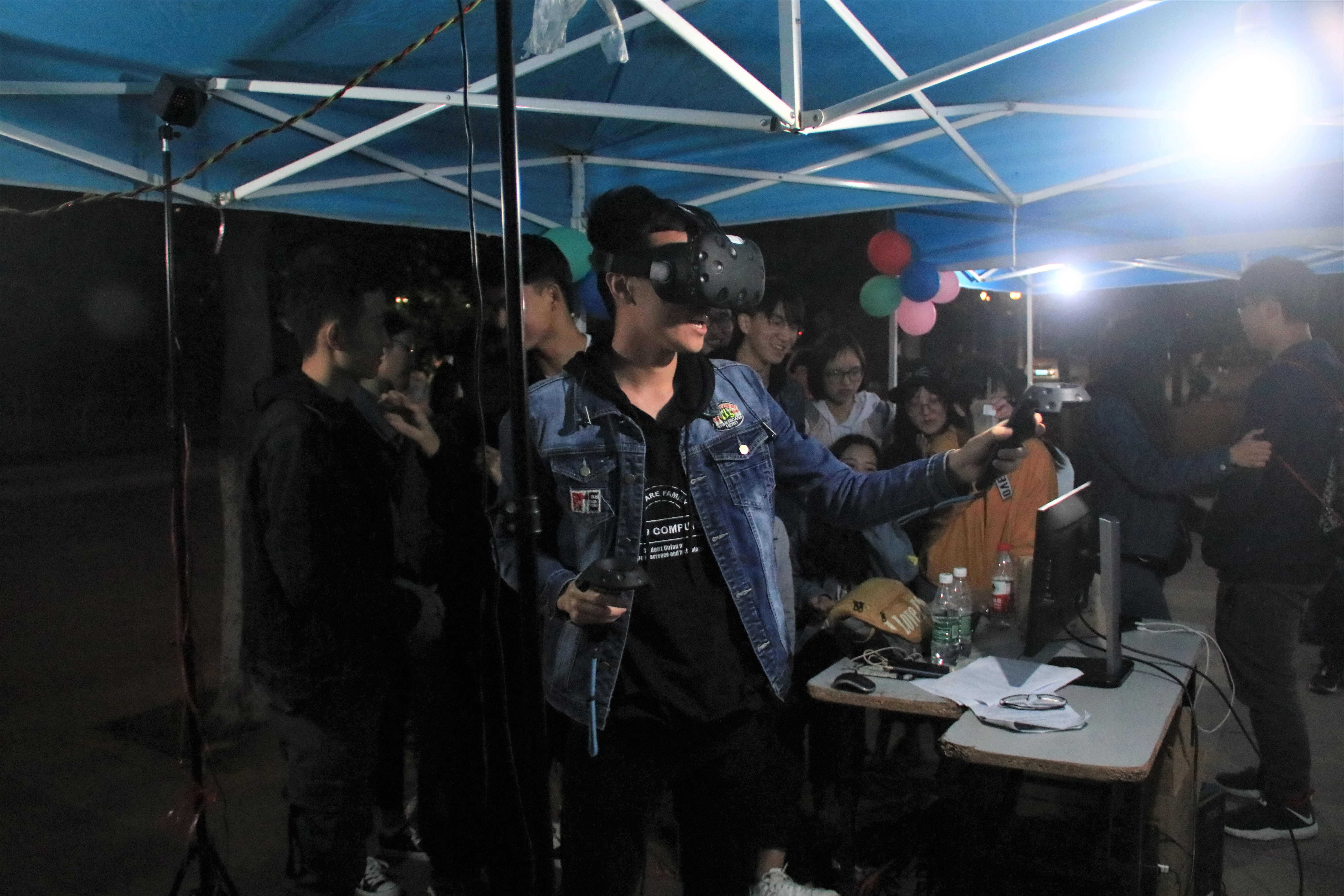 五点半,游园会开始,X-box和VR体验区吸引了大量同学游玩体验,同时还有智能语音机器人、代码创意大赛、图灵测试等多个项目。微凉的晚风丝毫没能消减大家对项目的热情,来自不同学院的同学和外国友人纷纷进行游玩体验。