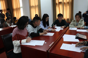 活动的第二环节为“模拟面试”。活动现场有八名同学积极参与此次模拟面试,面试以无领导小组讨论的形式展开,根据企业HR给出的模拟面试题,在5分钟内自由讨论,被面试者轮流发表看法并分工计时,最终统一意见,推选一人进行结论陈述。在模拟面试环节中,八位同学纷纷表达自己对面试题的看法,展开了热烈讨论,相互聆听与合作,在妙语连珠的过程中思想的火花迸发,同时也引发了在场旁听同学的思考与讨论。