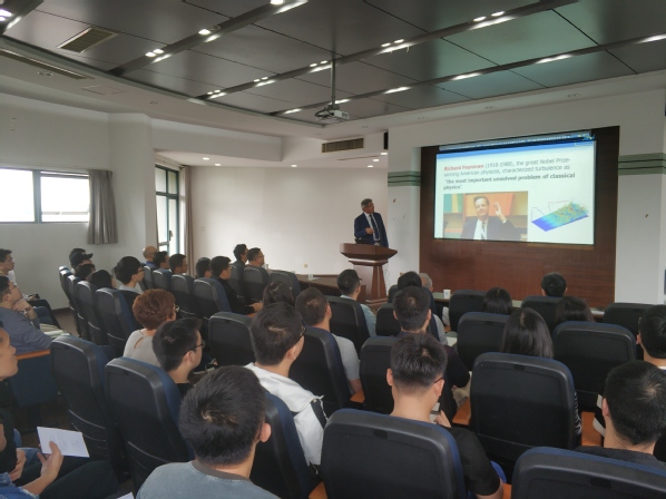 ShkvarYevhenii教授的报告从半经验湍流建模展开,介绍了其发展的湍流模型在复杂湍流边界层流动中的应用,重点介绍了表面摩擦力的微小吹气控制技术研究,以及微小吹气控制在改善高速列车气动性能中的应用。报告丰富多彩、生动有趣。会后,Shkvar Yevhenii教授与我校师生做了深入的交流、探讨及问题解答。