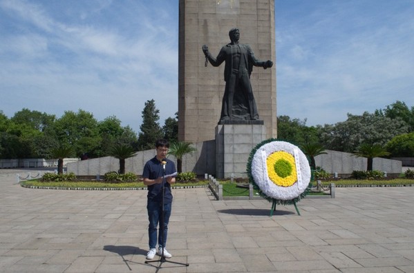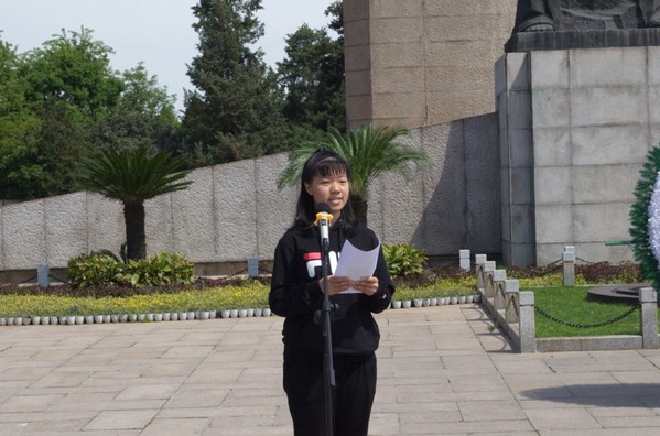 随后参与本次活动的全体成员来到烈士纪念碑下,为革命烈士敬献花圈。机电学院18级本科生辅导员孙志海、电光先进制造研究生团支部学生代表焦晨、0518001本科生团支部团员代表陈姝元先后发言。