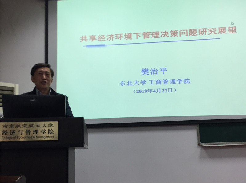 4月29日上午,东北大学教授、教育部长江学者特聘教授、国家杰出青年科学基金获得者樊治平教授受经济与管理学院智能决策与风险分析研究所邀请,在将军路校区经济与管理学院会议室作了题为“共享经济环境下管理决策问题研究展望”的讲座,并在讲座后与学院师生做了深入交流。经济与管理学院部分老师以及硕博研究生参与活动。