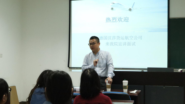 5月7日,外国语学院邀请德国汉莎货运航空公司走进校园,于学院111教室开展了揭秘国际航空运输业的“企明星”大讲堂分享会,德国汉莎货运航空公司(Lufthansa Cargo)南京站负责人田超纲、客服侍雪露、外国语学院本科生辅导员刘凡玉、盛嘉贤及学生代表参与了此次活动。