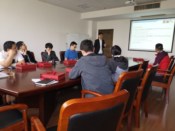 5月8日,航空学院航空航天交叉研究院(IRIAA)李栋栋博士为我校师生做了题为“Mechanicalbehaviors of functionally graded sandwich plates in thermal environments”的学术报告。报告针对力载荷和热载荷同时作用下功能梯度夹层板的弯曲和屈曲问题,介绍了研究的必要性、重要性及创新性,以及他与合作者在该方面的研究进展。报告结束后,李栋栋与在场的师生就相关领域的研究进行了交流和讨论。