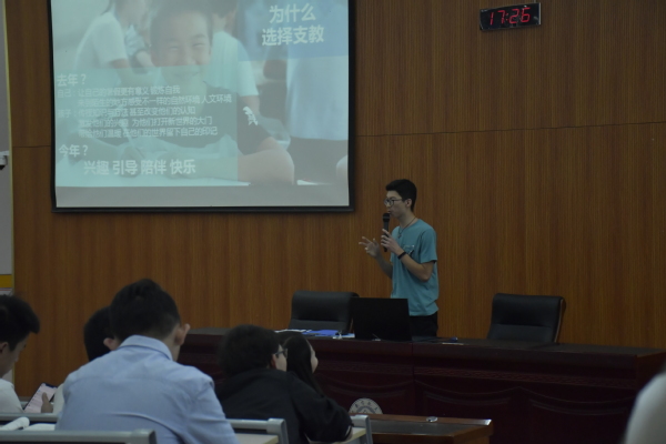 之后,优秀团队“小齿轮”支教团代表宋岳帅向同学们进行了展示。他讲述了选择支教的原因,于自己而言,是一次锻炼机会;于孩子们而言,是一次改变认知,培养兴趣,打开新世界大门的机会。随后,学院五大学生组织的负责人进行了社会实践项目发布。最后,进行了暑期社会实践策划大赛的颁奖,获奖团队代表上台领取了获奖证书。