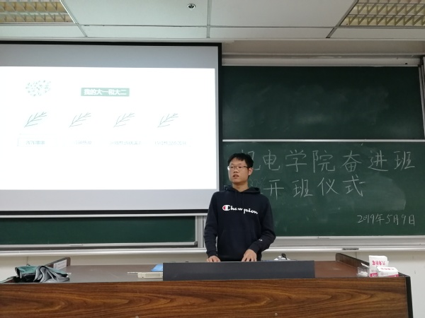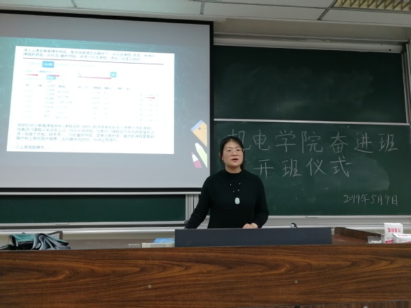 为进一步加强学院学风建设,帮助学院低年级学困生群体的改善学习氛围、增强学习信心、提升专业成绩,5月9日晚,机电学院奋进班开班仪式在江宁校区10305教室举行。本次仪式由学院学支中心负责老师刘洪达主持,大一年级辅导员孙志海参与。