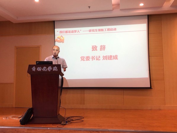 刘建成在致辞中高度肯定了本科生领航工程在思想引领、学风建设等方面取得的良好成效,阐述了举办研究生领航工程的重要意义,并借习近平总书记在纪念五四运动100周年大会上的重要讲话,寄语学生党员,不忘初心、砥砺奋进,收获梦想,全体参会人员备受鼓舞。